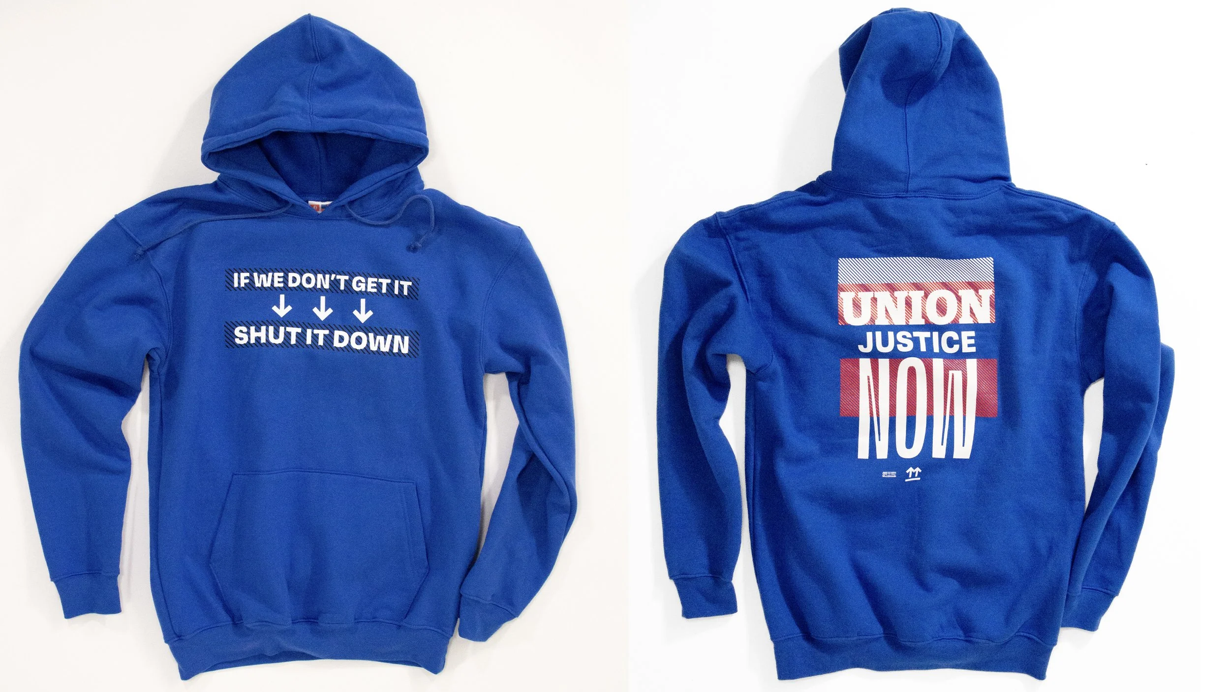 as the members of the missouri workers center advance their mission of gaining power on and off the job across missouri through strikes, public speaking events, and taking action at the state capitol, a range of slogan-emblazoned apparel makes their intentions crystal clear. from the key phrase, "organize. fight. win", to "union justice now" each piece is meant to instill pride and confidence in the wearer and clearly identify them as a member of the organization through consistent use of vivid color, bold typography, and graphic elements that depict unity in diversity in a contemporary way.